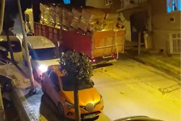 Olay, gece saatlerinde Avcılar Tahtakale Mahallesi’nde meydana geldi. Tuğla yüklü bir kamyon yokuşu kara çıktı sırada sokağa dönemeyerek durdu. Bir süre bekledikten sonra manevra yapmaya çalışan kamyon, ağırlığı nedeniyle geri geri kaymaya başladı. O sırada park halinde bulunan iki aracı da sürükleyen kamyon, kaldırımda bulunan bir ağaca çarparak durabildi. Yaşanan kazada araçlar ağır hasar alırken, kamyondan yola çok sayıda tuğla saçıldı. Yaşanan kaza anı ise çevredeki bir vatandaşın cep telefonu kamerasına saniye saniye kaydedildi.Yaşanan kazayı anlatan mahalle sakini Mülazim Oruç, “Tuğla yüklü kamyon yokuşu çıkıyordu. Sokağın başında bir araç vardı, o nedenle dönemedi. Bir süre bekledi, aracı hareket ettirdiler. Tekrar hareket ettiğinde ise geri kaçtı. Park halindeki iki aracı da sürükleyerek durabildi. Kazada araçlar ağır hasar aldı. Kamyondan ise yola tuğla döküldü” dedi.