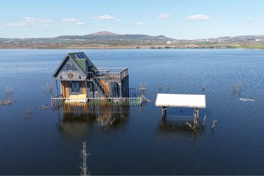Bursa'da son bir aydır aralıksız süren yağışlar ve kar erimeleriyle seviyesi yükselen Ulaabat Gölü, Karacabey Ovası'na taştı. Yapılaşmanın yasak olduğu göl havzasında inşa edilen bungalovlar, suyun yükselmesiyle gölün ortasında kaldı. Oluşan manzara, 2006 yapımı Hollywood filmi The Lake House (Göl Evi)'ndeki göl içindeki evi akla getirdi.