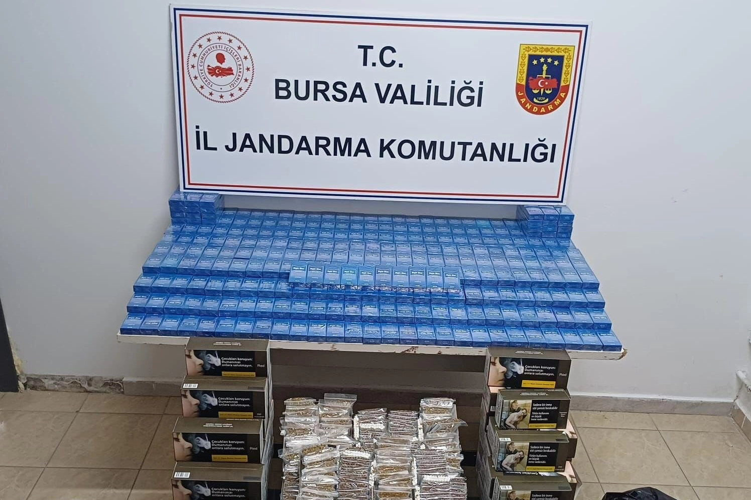 Yapılan aramalarda yüklü miktarda kaçak tütün ve sigara ele geçirildi. Ele geçirilen ürünler arasında: