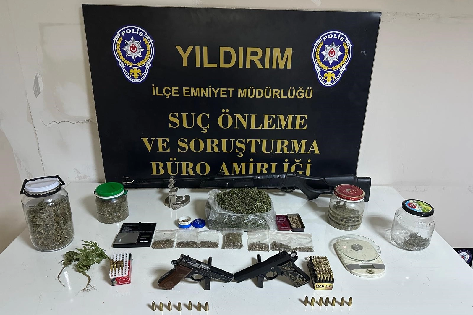 Yıldırım İlçe Emniyet Müdürlüğü Suç Önleme Ve Soruşturma (SÖS) Büro Amirliği ekipleri, uyuşturucu ticareti yapıldığı ve evde silah bulunduğu istihbaratı üzerine çalışma başlattı. Şüphelilerin delilleri karartmasını engellemek amacıyla ekipler, sivil kıyafetlerle kapıyı çalarak dikkat çekmeden içeri girdi. Kapının açılmasıyla birlikte ekipler içeri girerek operasyonu gerçekleştirdi.