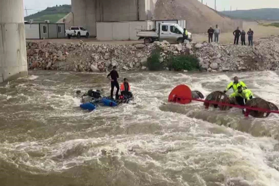 Bursa’nın Yenişehir ilçesinde Kocasu Deresi’nden traktörle karşıya geçmek isteyen 10 işçinin bulunduğu traktör, suyun ortasında devrildi. Akıntının etkisiyle dengesini kaybeden traktördeki işçiler dere içinde mahsur kaldı.
