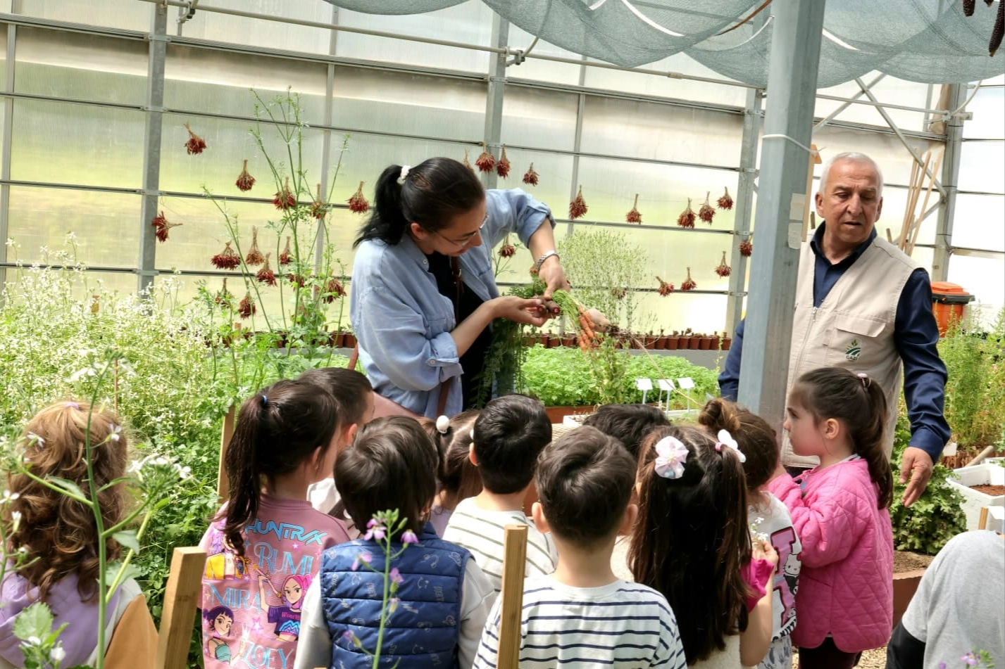 İlk kez sera ortamını deneyimleyen çocuklar, tükettikleri gıdaların nasıl yetiştiğini yerinde öğrenme fırsatı buldu.