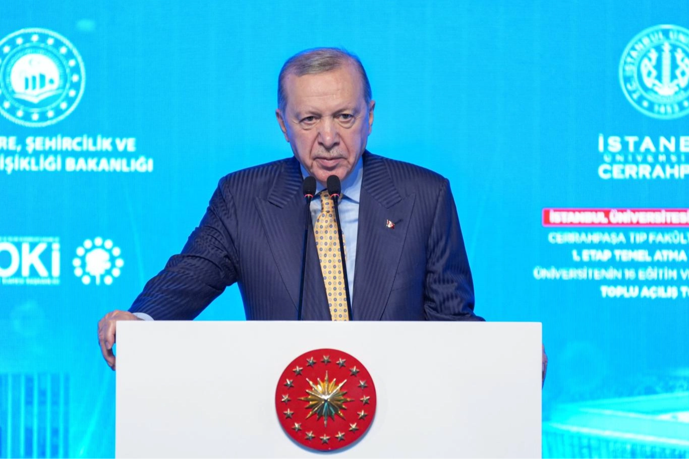 Cumhurbaşkanı Recep Tayyip Erdoğan, Cerrahpaşa Tıp Fakültesi'nde Cerrahpaşa Tıp Fakültesi Hastanesi 1. Etap Temel Atma Töreni ile Üniversitenin 16 Eğitim ve Yurt Binasının Toplu Açılış Töreni'ne katıldı. Burada bir konuşma yapan Cumhurbaşkanı Erdoğan, tüm sağlıkçıların 14 Mart Tıp Bayramı'nı kutladı. Cerrahpaşa Tıp Fakültesi'nin dönüşüm çalışmalarından söz eden Cumhurbaşkanı Erdoğan, "Cerrahpaşa Tıp Fakültesi'nin dönüşüm çalışmaları Büyük Marmara Depremi akabinde başlatılmış fakat ne yazık ki son derece yetersiz ve sınırlı diyebileceğim bir noktada kalmıştı. Güçlendirme ve yeniden inşa faaliyetlerini daha etkin bir hale getirmek üzere 2013 yılında yeni bir süreç yönetimi planladık. Hastanemizi hem başka bir yere taşımamız hem de depreme dayanıksız olan eski binayı yıkıp aynı yere yenisini inşa etmemiz gerekiyordu. 2018'den itibaren tüm bu çalışmalar yeni kurulan İstanbul Üniversitesi Cerrahpaşa bünyesinde devam etti. Proje üç etaplı tasarlandı ve eş zamanlı olarak hem inşaata başlanması hem de eğitim ve sağlık hizmetlerinin aksamadan devam ettirilmesi hedeflendi. Bu amaçla normalde son etap olarak inşası planlanan alana yaklaşık 40 bin metrekare büyüklüğünde 23 adet çelik konstrüksiyon bina inşa edildi. Böylelikle hem burada öğrenim gören gençlerimizin eğitimleri kesintisiz şekilde devam etti hem de vatandaşlarımıza sunulan sağlık hizmetlerinin devamı sağlandı" dedi.