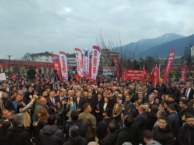 Belediye binası önündeki binlerce Bursalı, Gökhan Zeybek ve Özgür Çelik’in konuşmaları sırasında sık sık "Hak, hukuk, adalet" ve "Mustafa Bozbey onurumuzdur" sloganları attı. Emniyet güçlerinin geniş güvenlik önlemi aldığı alanda, kalabalığın bekleyişi sürüyor.