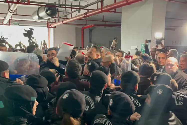 Bursa Büyükşehir Belediye Binası'na gelen CHP Bursa İl Başkanı Nihat Yeşiltaş, CHP'li milletvekilleri, belediye başkanları ve meclis üyeleri Meclis Otoparkı'nda açıklama yaptı. CHP Grubu, 'meclise alınmama' gerekçesiyle binayı terk etti.