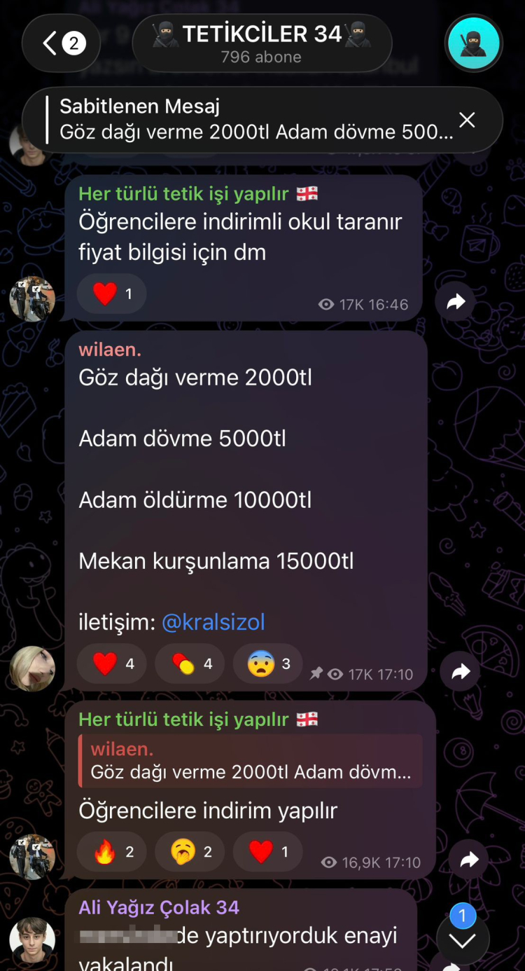 Grupta bazı kullanıcıların, yeni saldırılar düzenleneceğine yönelik tehdit içerikli mesajlar paylaştığı, hatta saldırılar için adeta “fiyat tarifesi” oluşturulduğu iddia edildi.